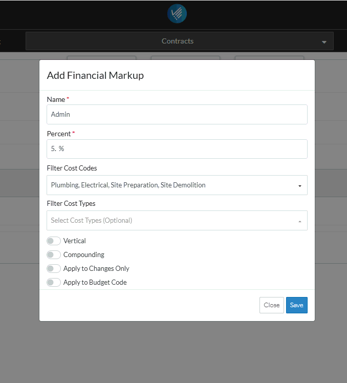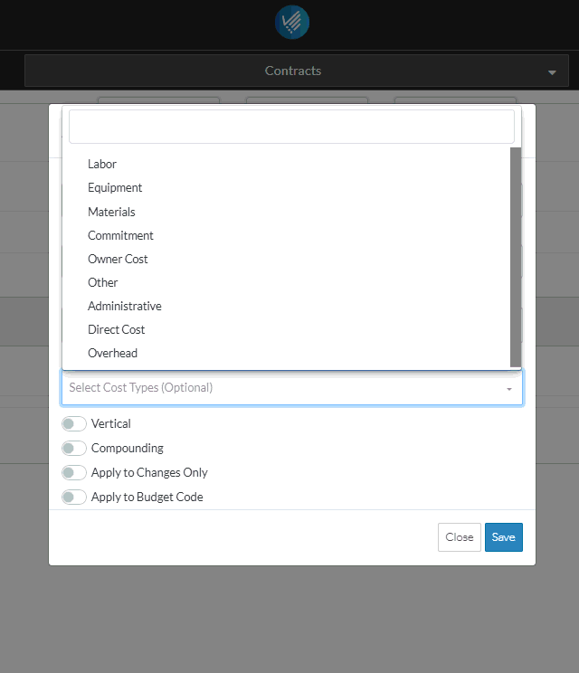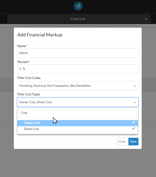 Financial Markups can be set to apply to only certain Cost Types. This can be one Cost Type or multiple Cost Types.