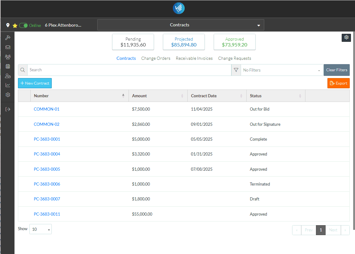 - Access the Contracts List from the Project Menu Bar, see Contracts List - Accessing.