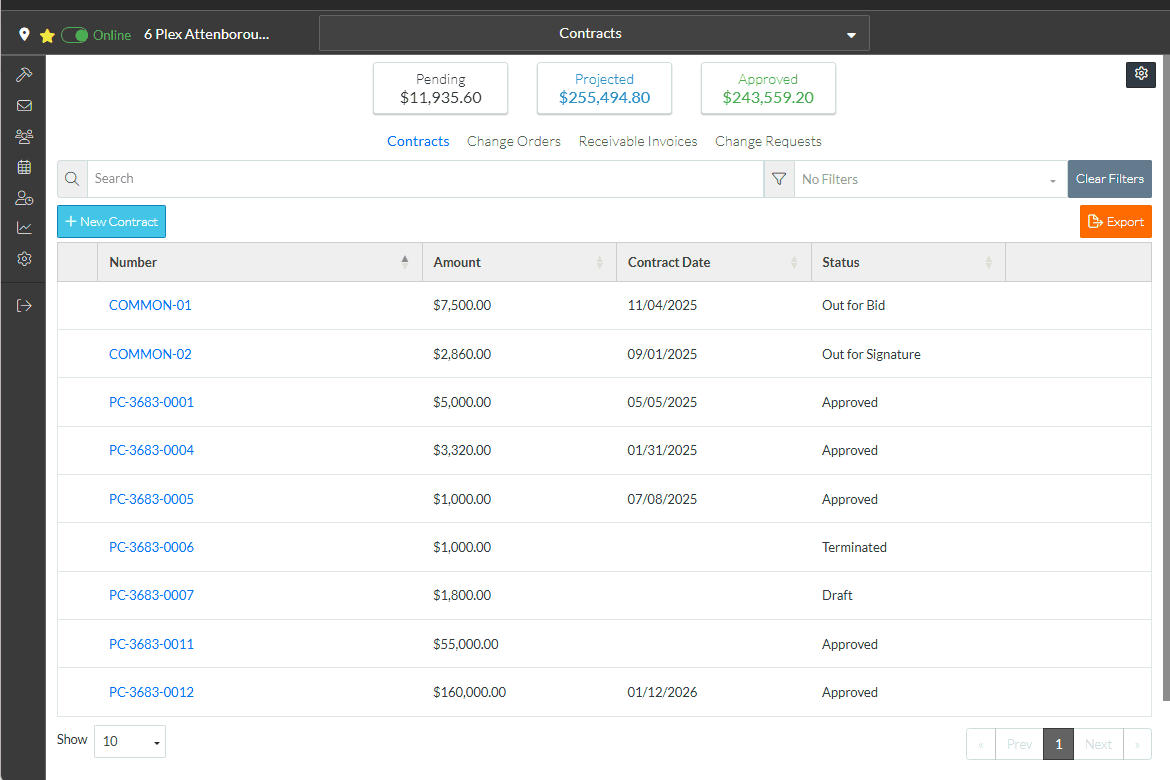 New Change Requests can only be added for Approved Contracts. See Contracts - Status for more information. When the New Change Request function is initiated, a list of only the Approved Contracts is displayed and can be selected.