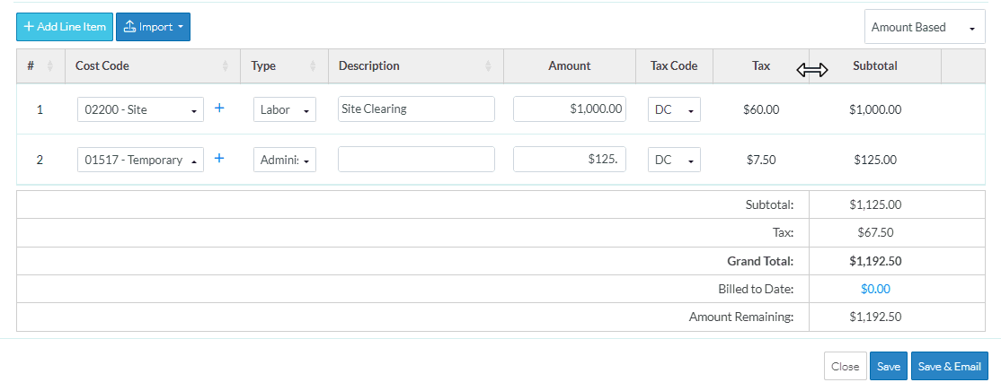 To bulk Import Line Items, see Contract - Schedule of Values - Import.