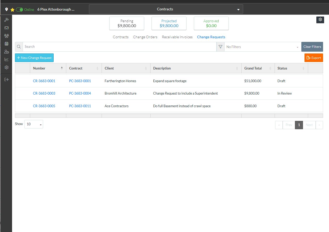 Contracts - List of all Change Requests - Accessing