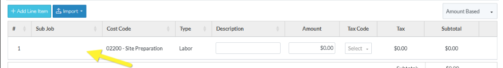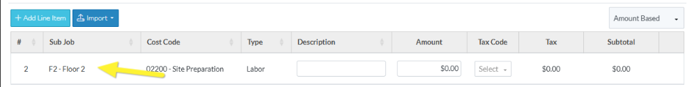 Set the Cost Code for the Line Item, see Schedule of Values - Line Item - Cost Code with Sub Jobs.