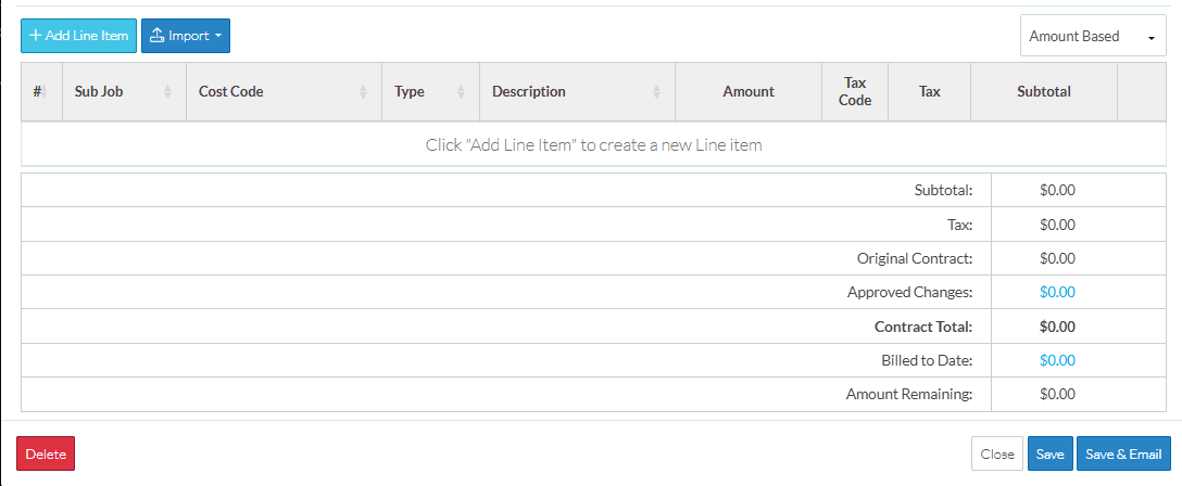 - If Sub Jobs are not turned on, enter the Cost Code, see Schedule of Values - Line Item - Cost Code.