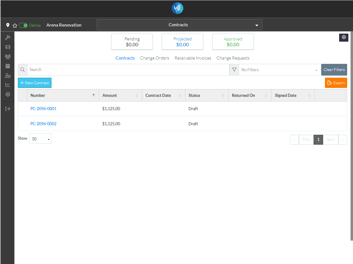 Create or manage Contract Change Orders, see Contract Change Orders - Overview.