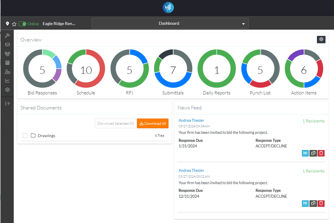 - From the Project Menu Options bar in the Job Costing section, click Contracts.
