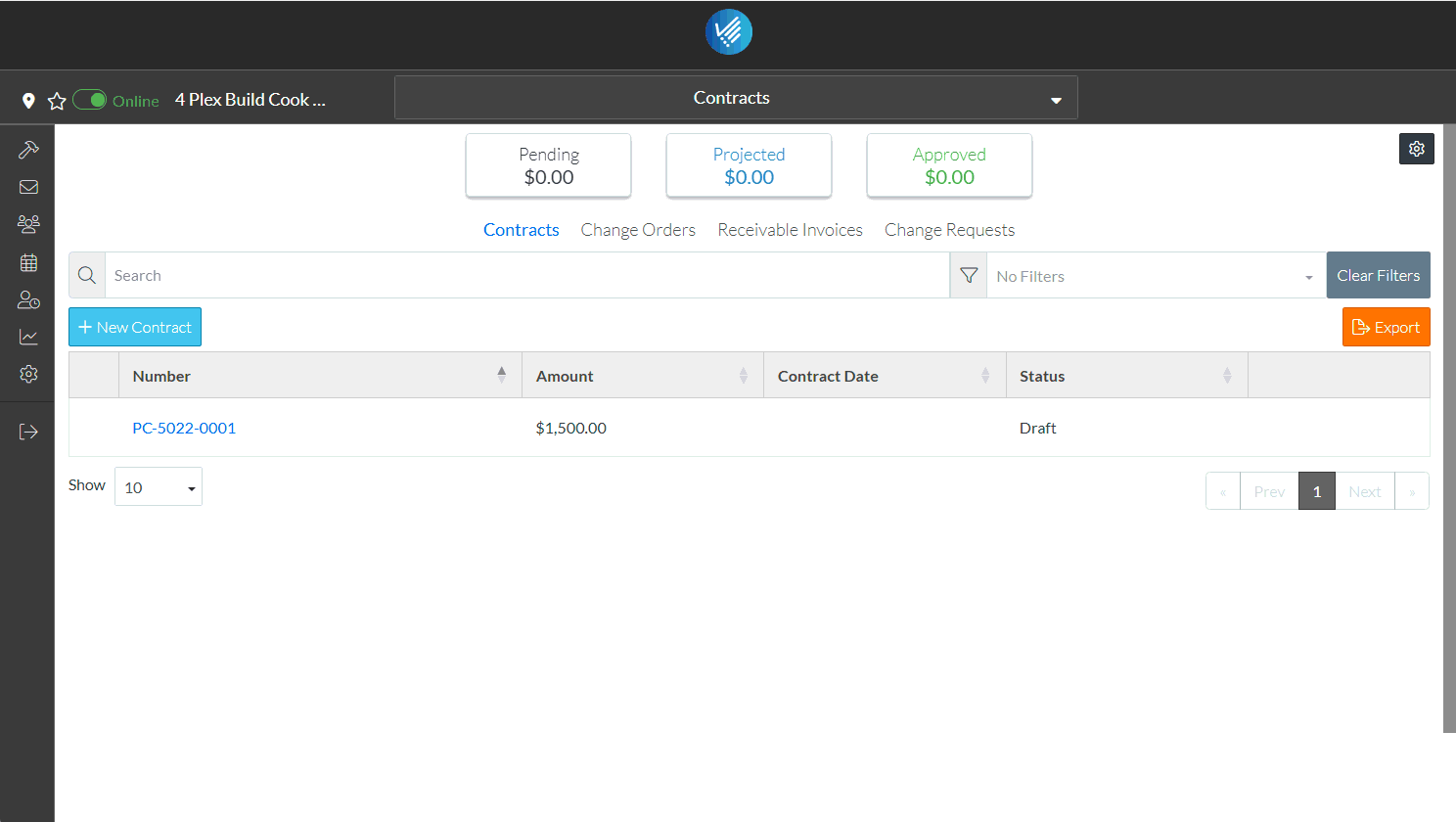 - Change Orders can be created and managed.