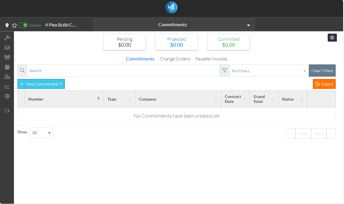 - Click the + New Commitment