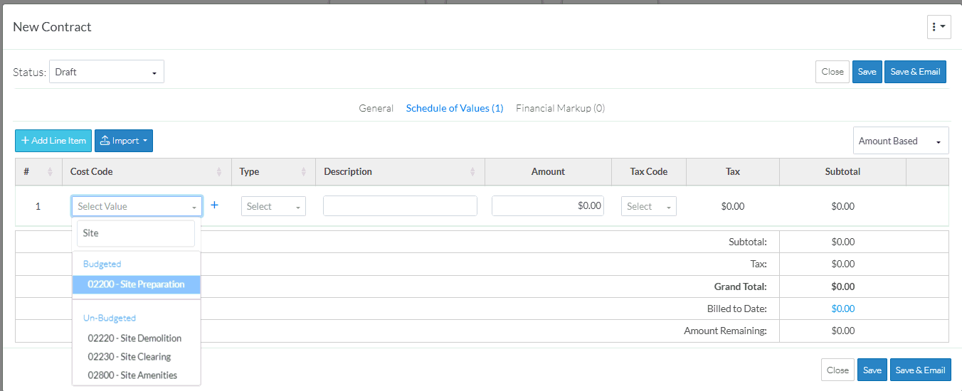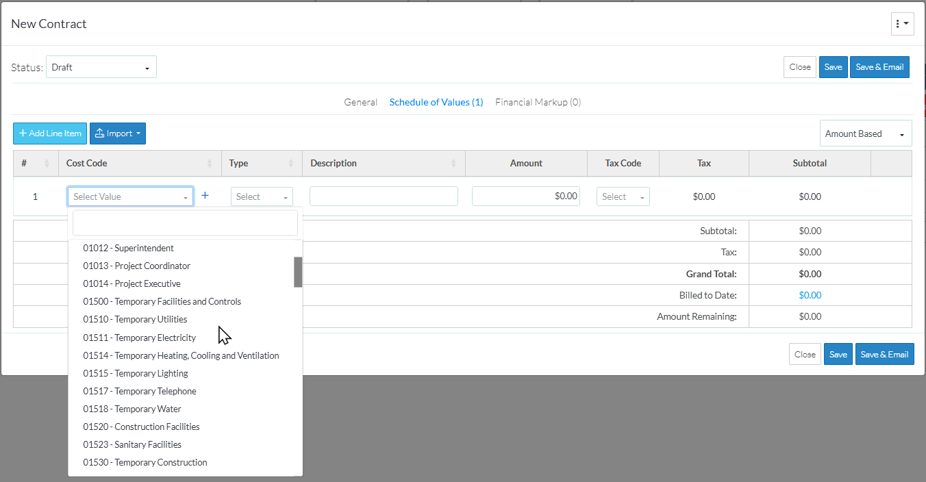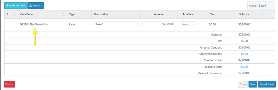 Schedule of Values - Line Item - Cost Code