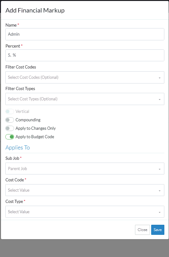 Financial Markup - Applies to Budget Code