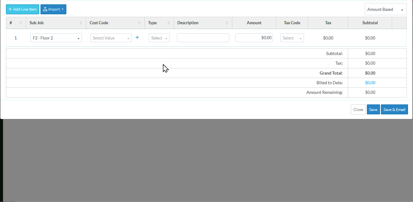 Cost Codes must be setup and Cost Codes assigned to the Project before the Line Items can be created. See Cost Codes - Overview for more information.