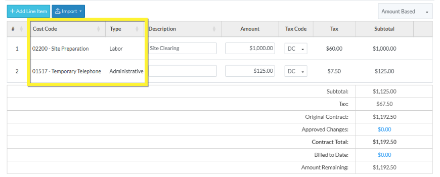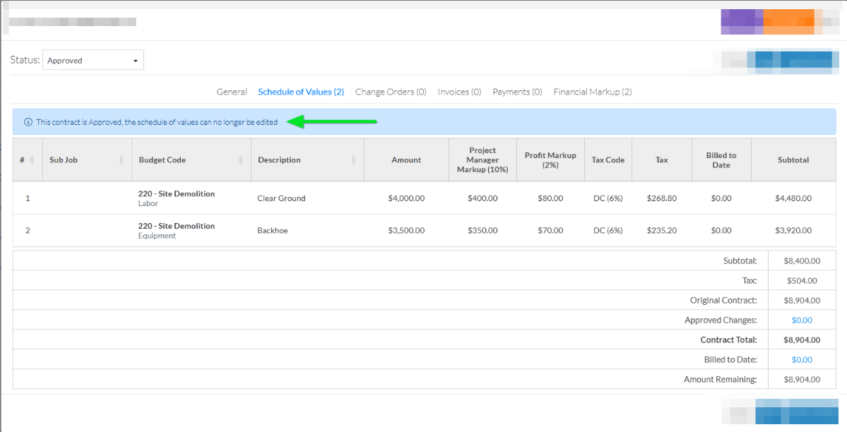 To see details about what displays for each Line Item, see Schedule of Values - Line Items.