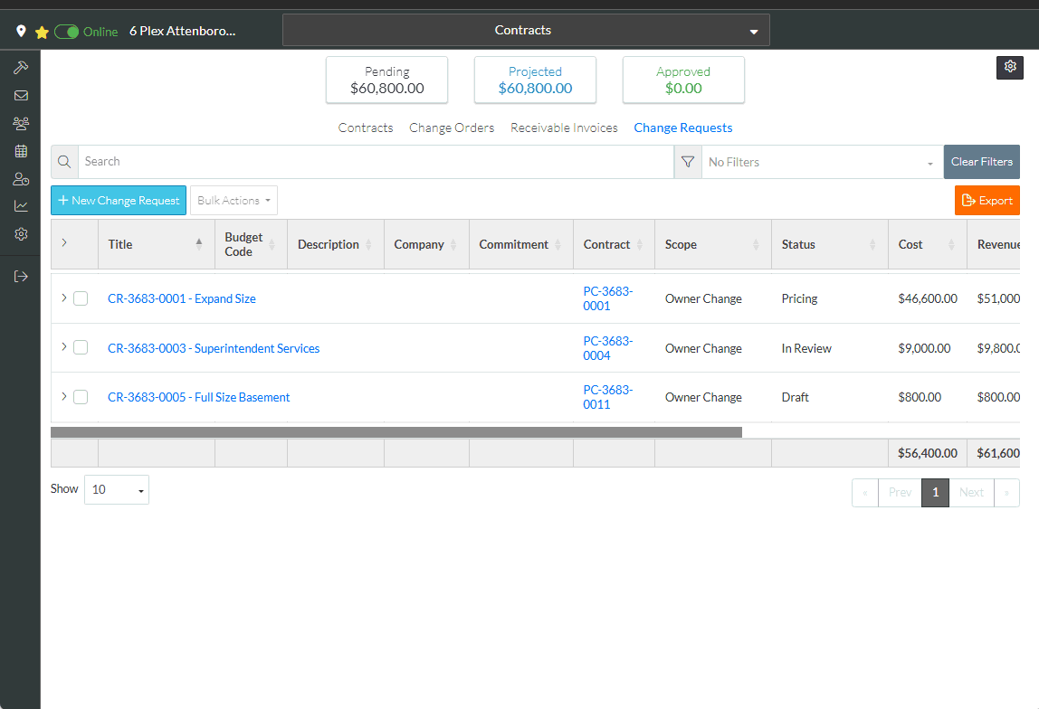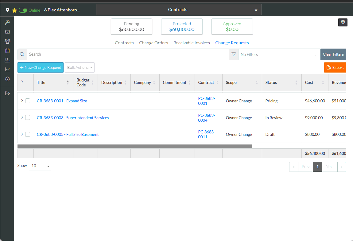 Contracts - List of all Change Requests - Change Request - View/Edit (Grouped List View)