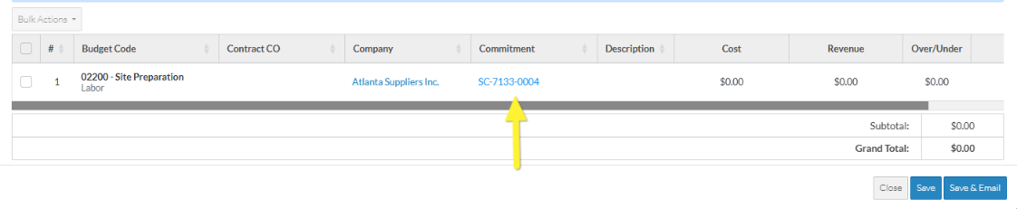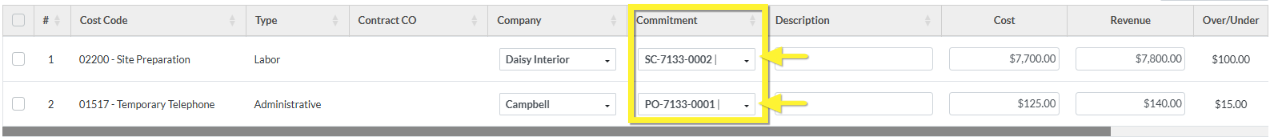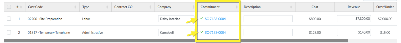 If the Commitment or Commitment Change Order does have a check mark, it means it is associated with a Line Item on the Commitment or Commitment Change Order Schedule of Values.