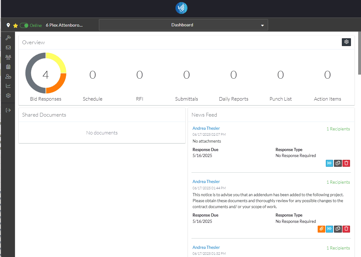 Note* Depending on the size of the form and permissions for the user, the Project Menu Options bar may appear different.