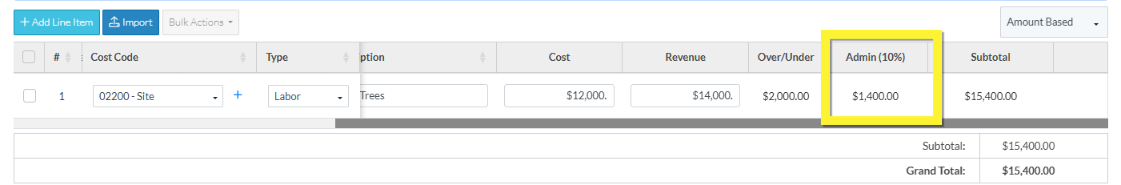 - Subtotal - see Change Request - Schedule of Values - Line Item - Subtotal.