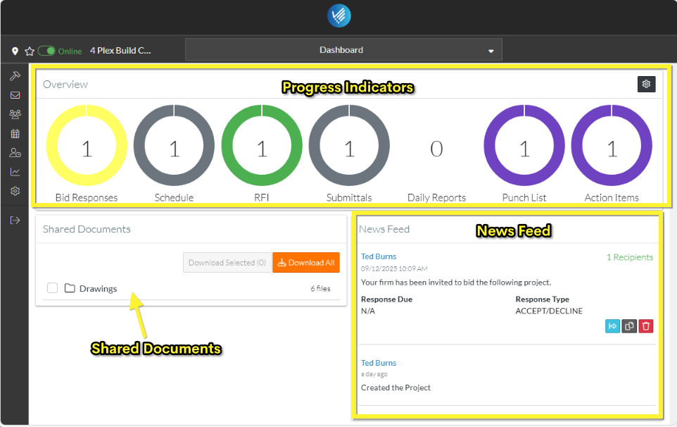 Easy access to download shared documents including drawings or photos.