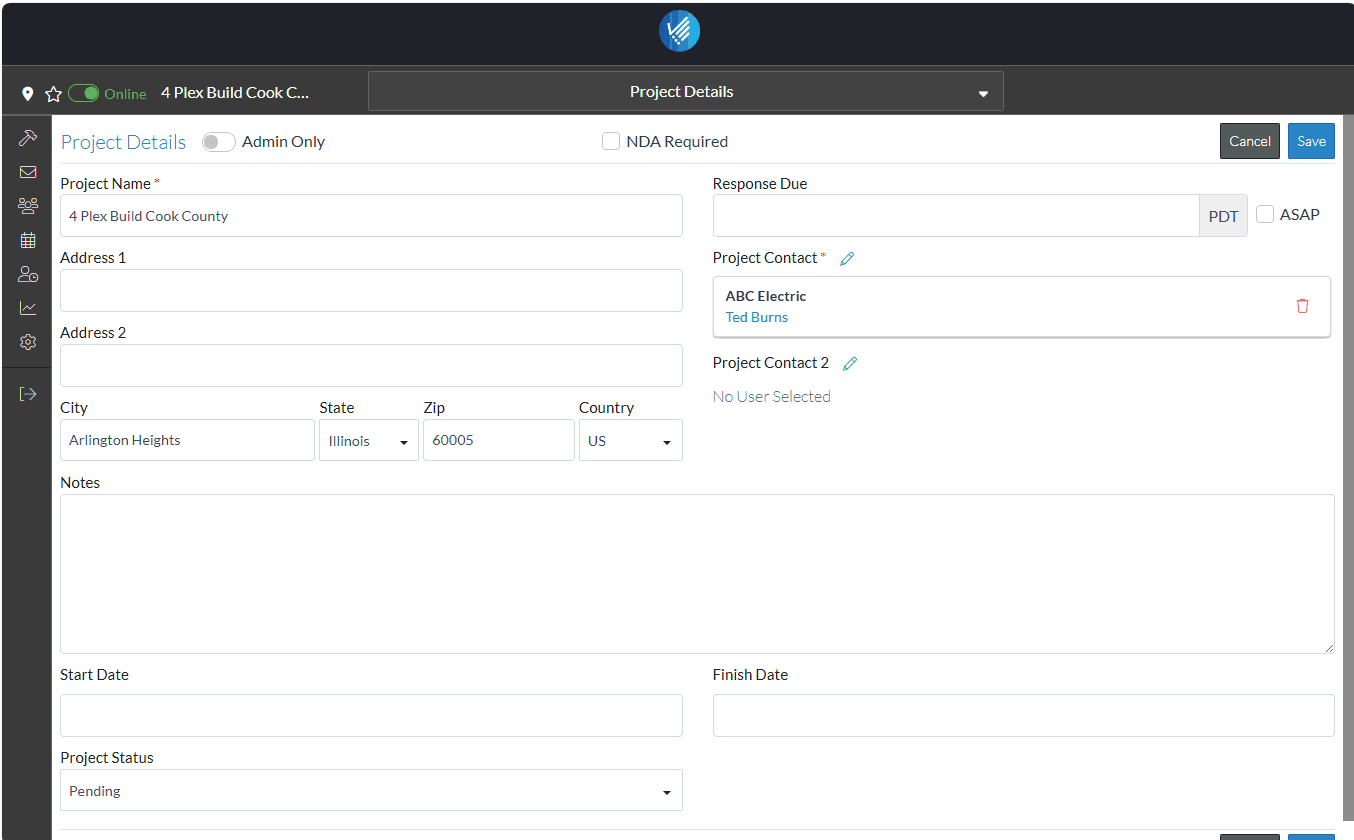 - Set whether other people besides the user in your company can see this project (with the online/offline feature).