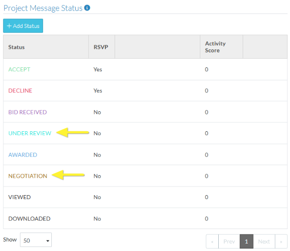 - The order of the User Defined Status in the Project Message Status list impacts how the parent item is updated if there are multiple child items with different User Defined Status (Note* regardless of the User Defined Statuses or order, this only occur if no other child items have their status set to Accept, Bid Received, Awarded.)