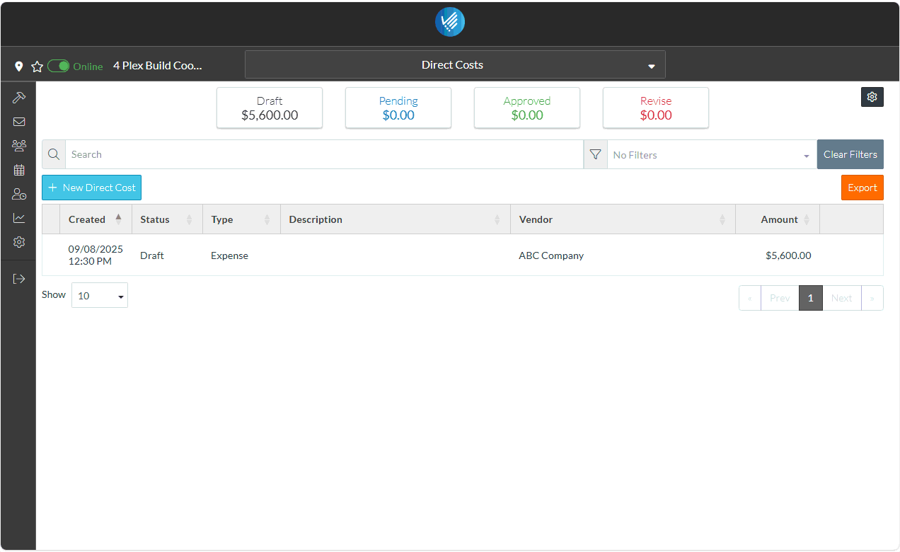 A line item for each Cost Code and Cost Type is created (if a line item with that Cost Code and Cost Type does not already exist).